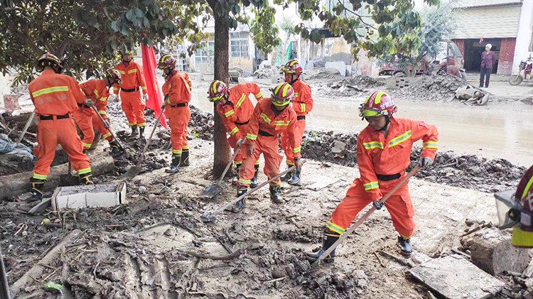 救援中隊隊長閆瑋回憶:“我們是第一批進駐稻畦和立亭村的救援隊伍,在我們駐地附近的黨大媽,每天用自家臨時搭建的灶臺為我們燒熱水,她盡自己的最大能力,讓隊員們喝上一口熱水。在進駐災區第2天,立亭村黨支部書記與當地群眾送來了2箱方便面和2箱礦泉水,他說現在自來水沒通,他們這里的井水含堿很高,長期飲用會吃壞肚子;駐地是棄用多年的庫房,沒有床鋪被褥,晚上蚊蟲特別多,你們一定要注意安全……”