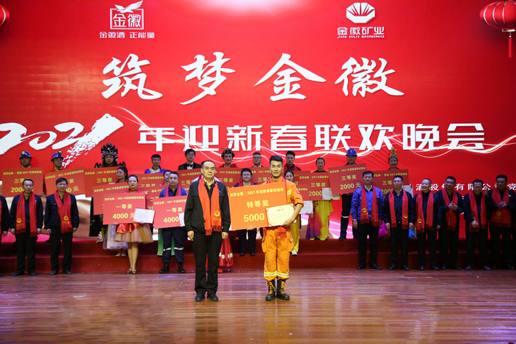 筑夢(mèng)金徽·2021年迎新春聯(lián)歡晚會(huì),既是金徽股份慶祝金徽礦業(yè)股份有限公司順利實(shí)現(xiàn)2020年既定目標(biāo),更是對(duì)各級(jí)黨委政府和社會(huì)各界長(zhǎng)期以來(lái)關(guān)心關(guān)注、支持幫助金徽股份發(fā)展的獻(xiàn)禮。2021年是“十四五”規(guī)劃的開局之年,更是金徽股份實(shí)現(xiàn)跨越發(fā)展的關(guān)鍵一年,在習(xí)總書記生態(tài)文明思想的指引下,金徽股份將繼續(xù)堅(jiān)持“理念引領(lǐng)、綠色高效、科技創(chuàng)新、和諧共贏”的經(jīng)營(yíng)宗旨,以干克難、再創(chuàng)佳績(jī),與社會(huì)各界一道滿懷信心,迎接更加美好的明天!(文、圖/劉明、馮佳蓉)